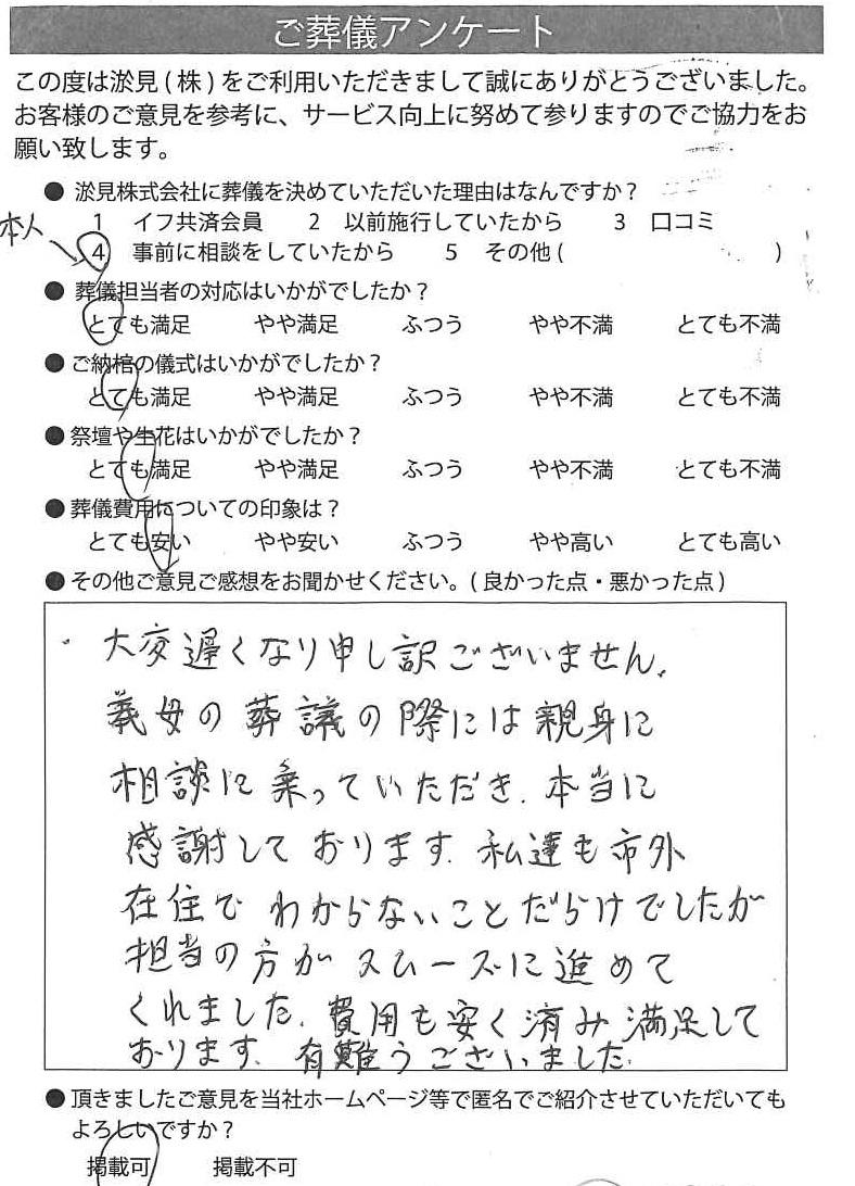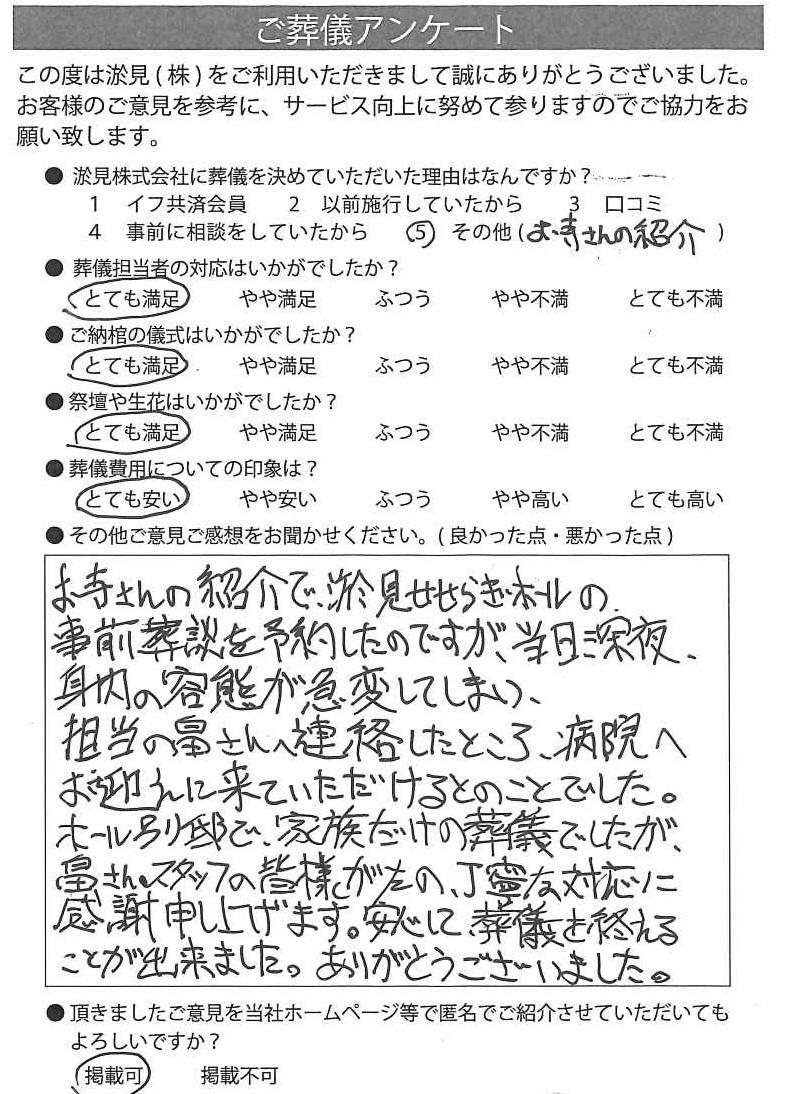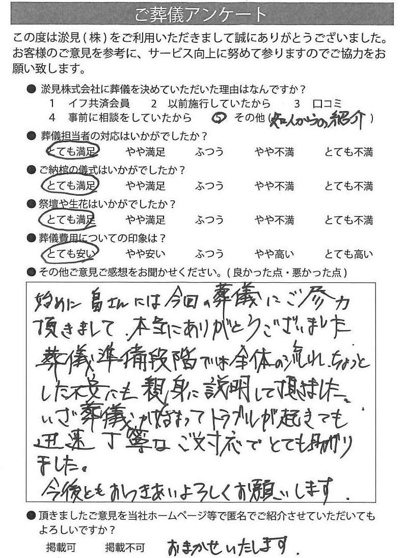 とてもスムーズに葬儀を終える事ができ感謝いたします。
