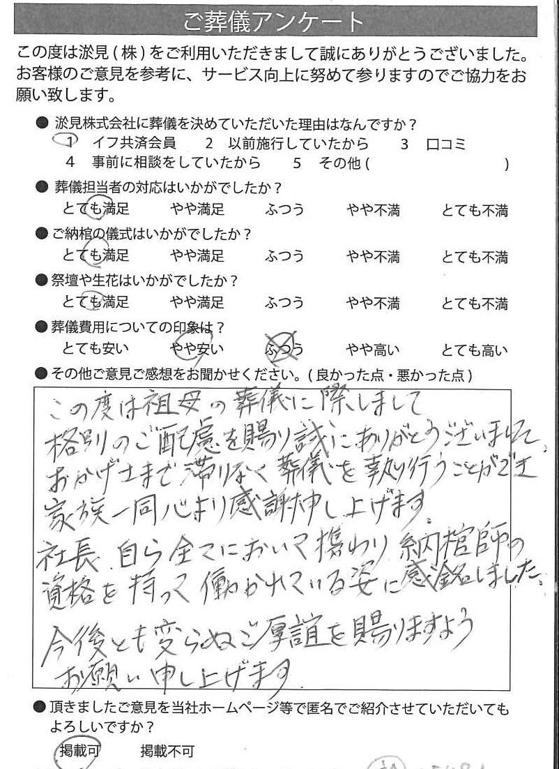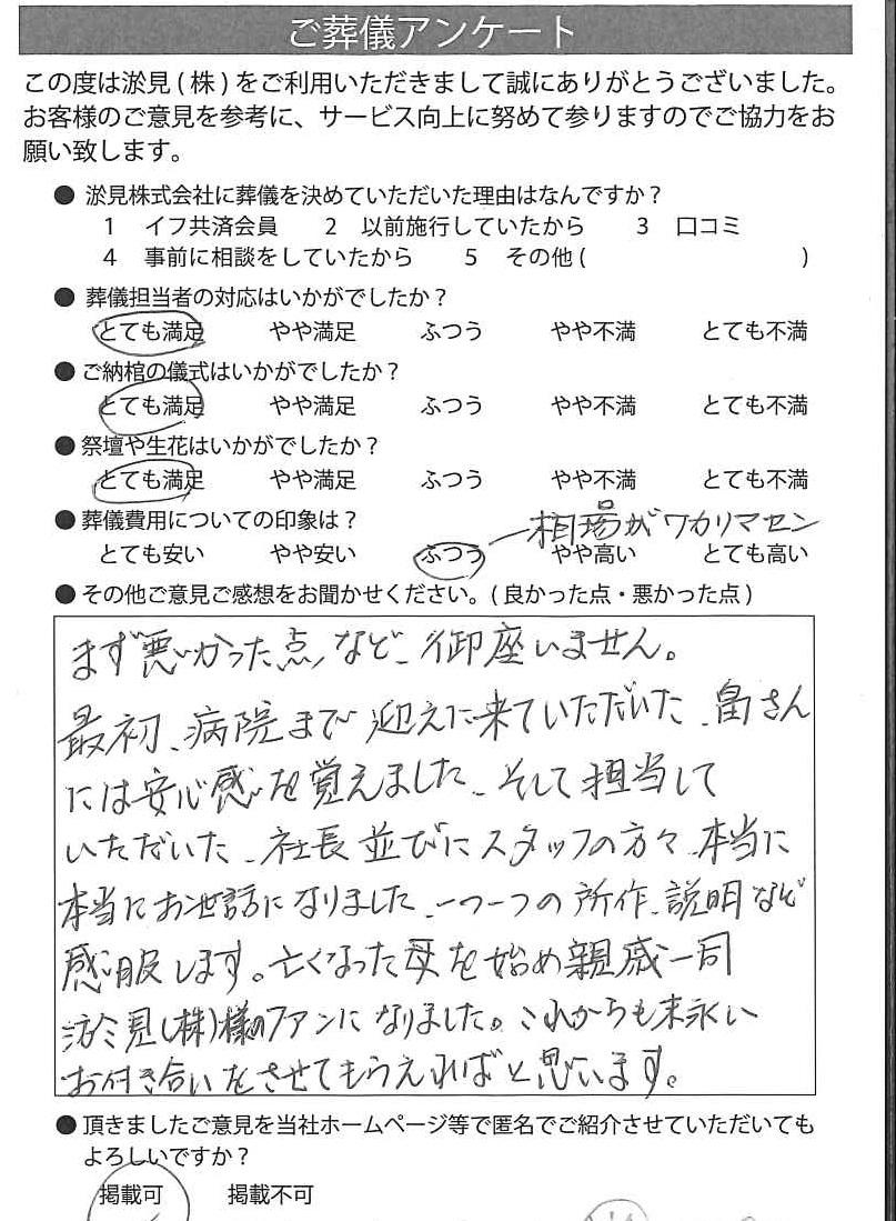事前の相談から、葬儀まで本当にお世話になりました。