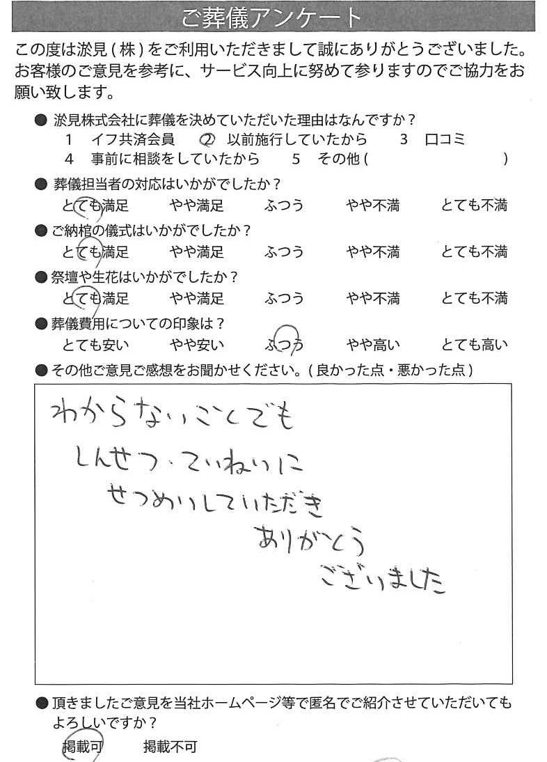 葬儀前も説明もとてもわかりやすく、葬儀中もとても、ていねいに