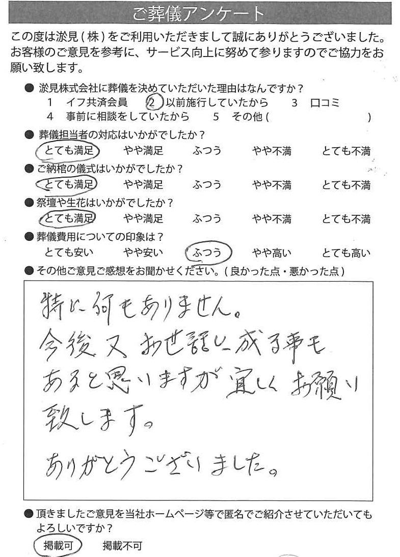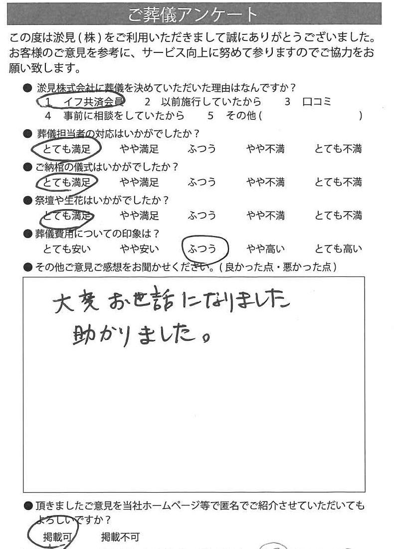 とてもスムーズに葬儀を終える事ができ感謝いたします。