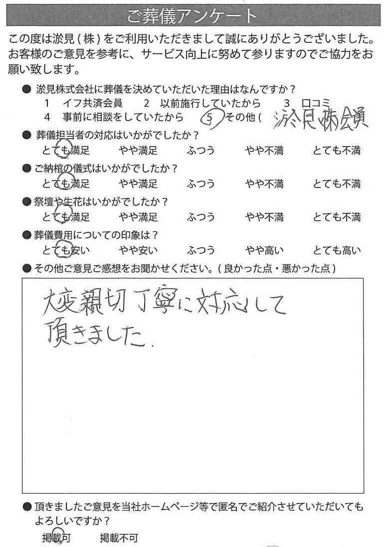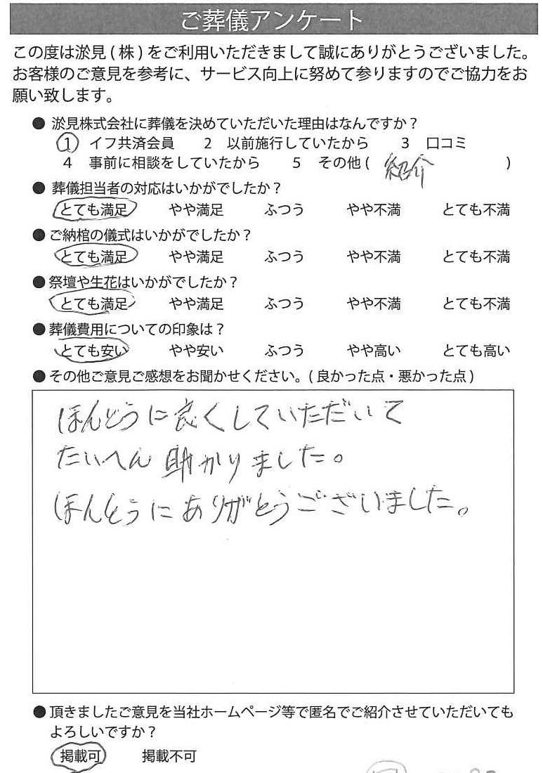 事前の相談から、葬儀まで本当にお世話になりました。